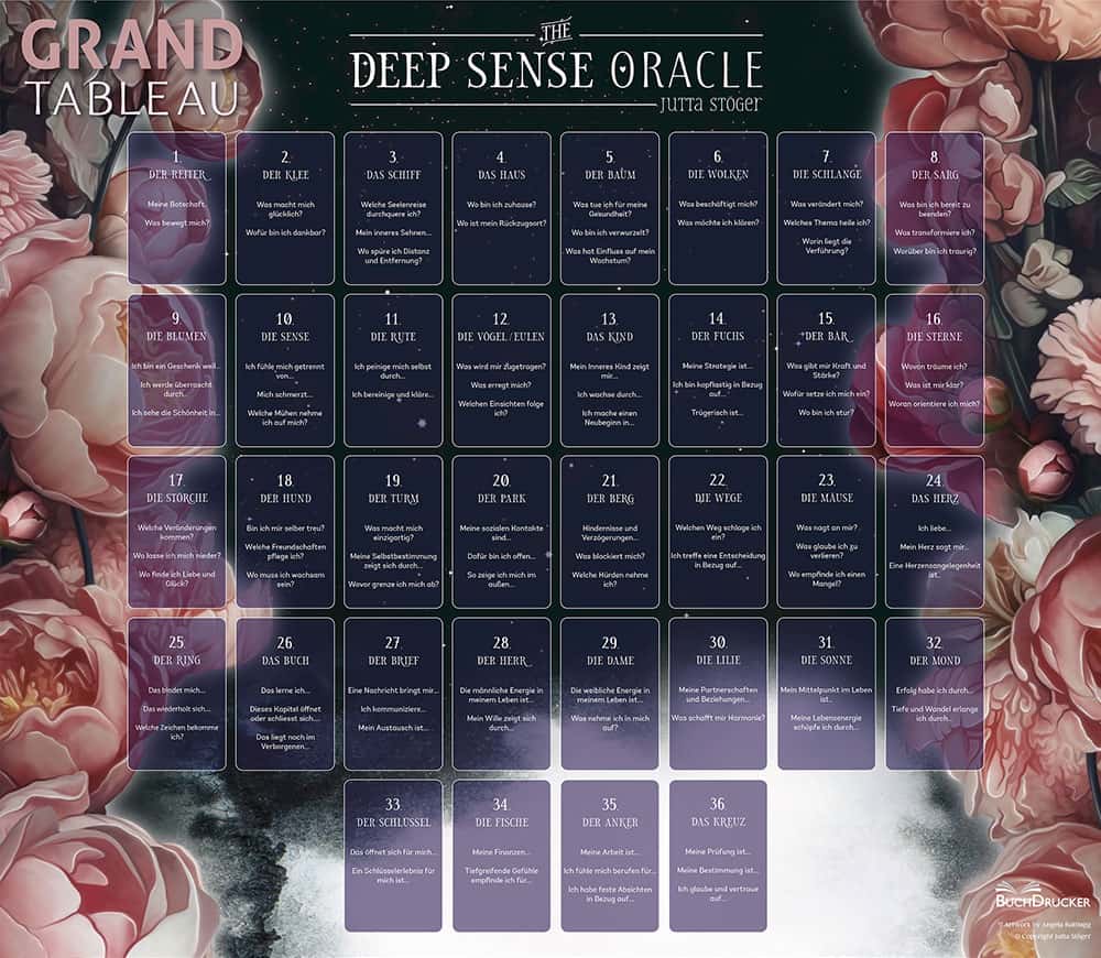 Professionelle Orakelvorlage für alle 36 Petit Lenormandkarten von Jutta Stöger