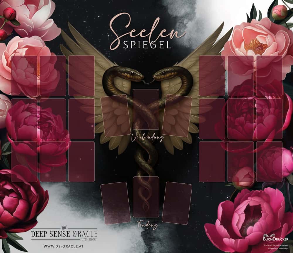 Der Seelenspiegel ist eine Legeschablone für die Begegnung zweier Seelen – ein feinfühliges Werkzeug, um Beziehungsdynamiken, Resonanzen und unausgesprochene Gefühle sichtbar zu machen. In dieser Legung spiegeln sich zwei Menschen in drei Ebenen: im Kopf – was sie denken und bewusst wahrnehmen, im Herz – was sie fühlen, hoffen oder fürchten, und im Tun – wie sie handeln, reagieren und miteinander in Resonanz gehen.