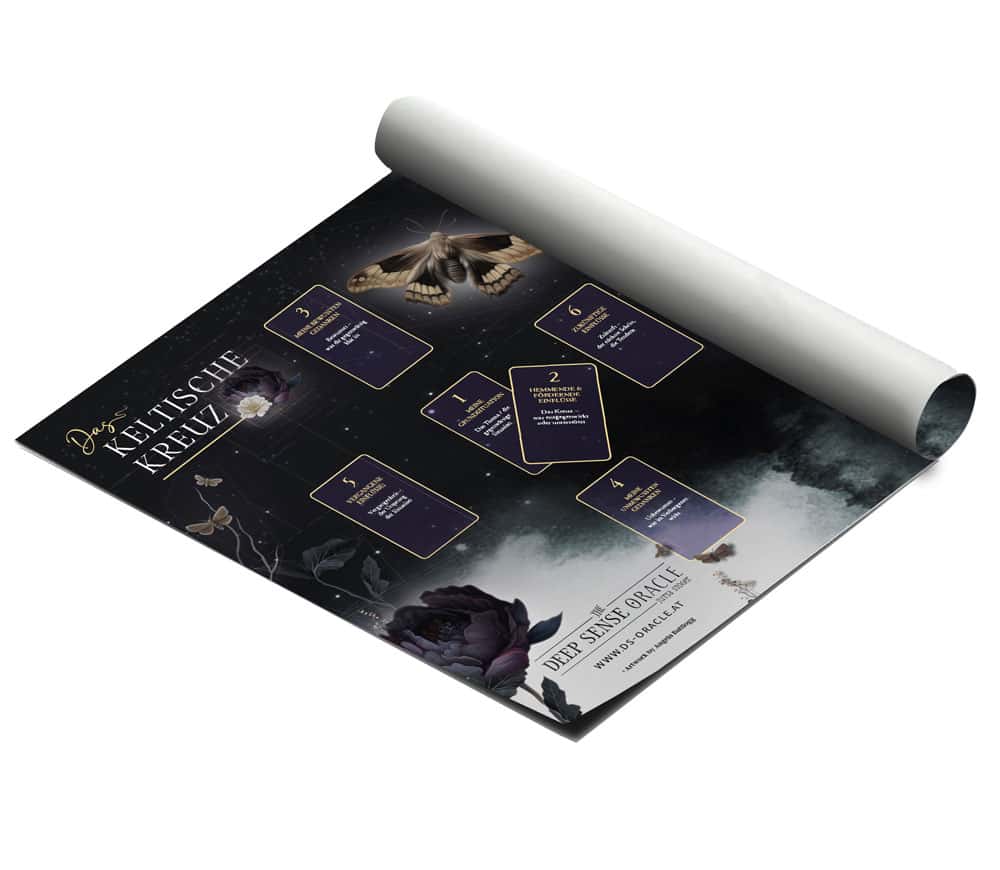 Diese mystisch, edel gestaltete Legeschablone führt Dich präzise durch die zehn Positionen des Keltischen Kreuzes – von den aktuellen Energien über Einflüsse und Herausforderungen bis hin zu Entwicklung, Erkenntnis und Schlüsselresonanz. Jede Position ist klar markiert und liebevoll gestaltet, damit Du Dich vollkommen auf die Botschaften der Karten konzentrieren kannst.