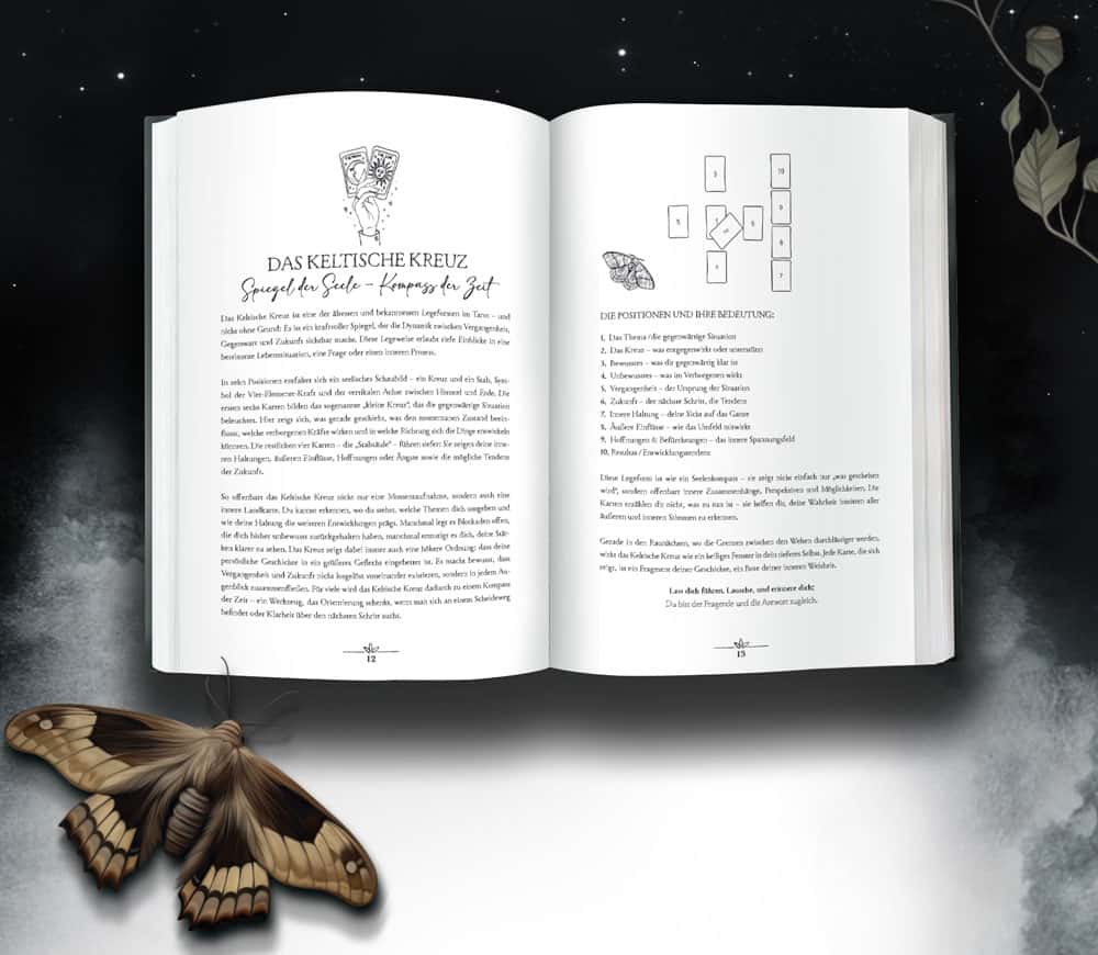 - Ideal für Jahresvorausblicke, Geburtstagslegungen oder spirituelle Standortanalysen